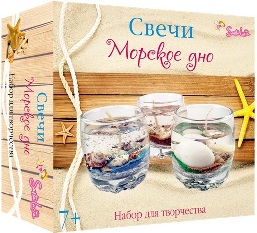 Состав набора: подсвечники 3 штуки, ракушки 9 видов, песок 4 цвета, фитиль, гель, инструкция.