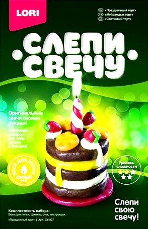 Слепи свечу Праздничный торт – это весьма красочный и увлекательный набор для детского творчества, который поможет Вашему ребенку создать своими руками оригинальный сувенир. В наборе Вы найдете все необходимые материалы: мягкий воск для лепки, фитиль, стек и подробную инструкцию. Сделать такую поделку ребенку самому не составит труда, в крайнем случае можете заглянуть в инструкцию и подсказать.