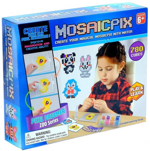 Конструктор игровой Mosaicpix Животные 780 эл – это весьма интересный и занимательный подарок для юного любителя мозаик. Аквамозаика под воздействием жидкости превращается в объёмную фигурку, с которой можно играть. Юному любителю творчества необходимо лишь выбрать шаблон, затем выложить бисер по трафарету и смочить полученную фигурку водой. И вуаля – произведение искусства готово! Такая замечательная мозаика надолго увлечет ребенка и подарит ему массу положительных эмоций. А сам игровой процесс зарядит его отличным настроением.