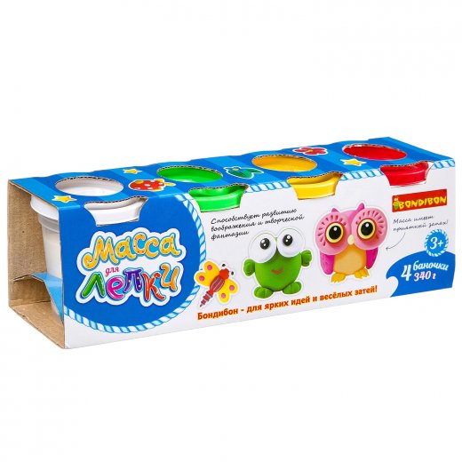 Купить Массу для лепки Bondibon 4 цв 340 г в Новосибирске Вы можете в магазине развивающих и настольных игр "Игры Почемучек"