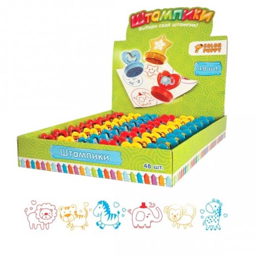 Купить Штампик Зоопарк сердечки ассорти в Новосибирске Вы можете в магазине развивающих и настольных игр "Игры Почемучек"