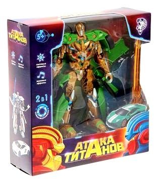 Атака титанов Робот-гонщик 2 в 1 – порадует юного любителя приключений и космических битв. Представленная игрушка выполнена в виде интересного робота, который может легко превращаться в стильное спортивное авто. Все элементы игрушки легко меняют свое положение, благодаря чему трансформер может легко и быстро менять свой облик. С такой игрушкой ребенок сможет разыграть много фантастических сюжетов, взятых из мультфильмов и фильмов, а также комиксов. Теперь на страже порядка стоят настоящие разумные машины, поэтому планете не грозит опасность.