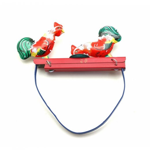 "Металлические курочки" – яркая забава для вашего малыша. На деревянной планке- основании находятся два разноцветных петушка. Если слегка начать двигать планку, то увидим, что петушки начнут клевать зернышки.