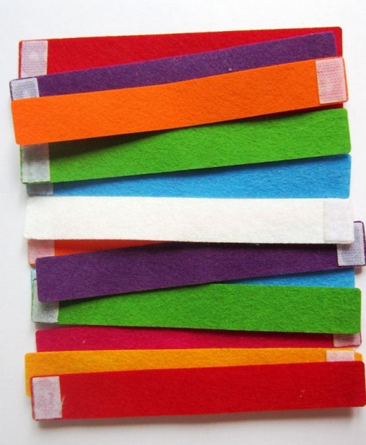 - Сделайте из одинаковых полосок дорожки при помощи липучек, походите по дорожкам пальчиками.