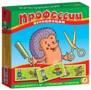 Настольная игра Ассоциации Профессии в познавательной и увлекательной форме расскажут ребенку о разных профессиях. Игра станет отличным помощником в формировании ассоциативного мышления ребёнка. С ее помощью дети научатся определять цвет и форму предметов, самостоятельно рассуждать, классифицировать и обобщать. Игра знакомит c представителями разных профессий, принадлежностями и орудиями труда, которые они используют в своей деятельности.