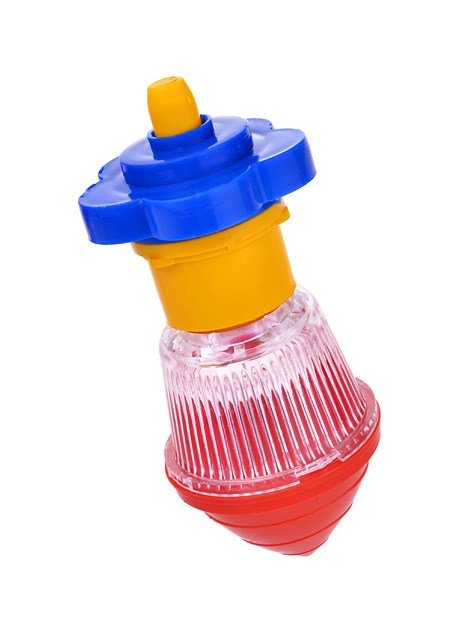 Чтобы этот разноцветный волчок начал вращаться, малышу надо лишь завести игрушку и отпустить ее на ровную поверхность.