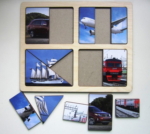 Купить Разрезные картинки Транспорт в Новосибирске Вы можете в магазине развивающих и настольных игр "Игры Почемучек".