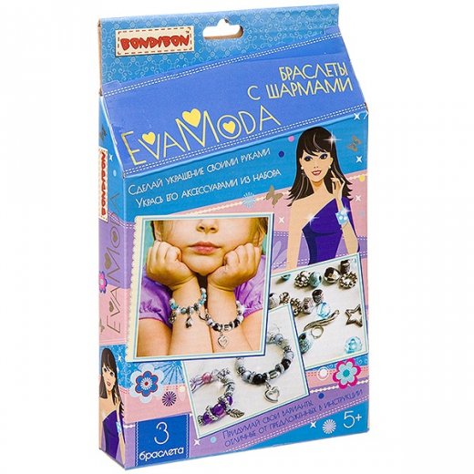 Необычный набор для творчества "Браслеты с шармами" из серии Eva Moda от торговой марки Bondibon поможет юной рукодельнице самостоятельно создать коллекцию оригинальных украшений. Всего в инструкции описаны способы создания 3 изящных браслета с шармами, но при желании можно отойти от написанного в ней и создавать творения с собственным неповторимым дизайном.