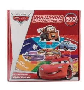 Викторина 500 вопросов "Тачки" Disney - это развивающая игрушка от компании "Умка". Игра создана по мотивам мультфильма "Тачки" о приключениях гоночной машинки Молнии Маккуина и его друзей. Это игра поможет вашему ребенку развить навык чтения, а также поможет тренировать память. Игра состоит из красочного поля, по которому нужно передвигаться при помощи красочных фишек с изображениями машинок, а также из набора вопросов, ответы на которые должен знать каждый мальчик.