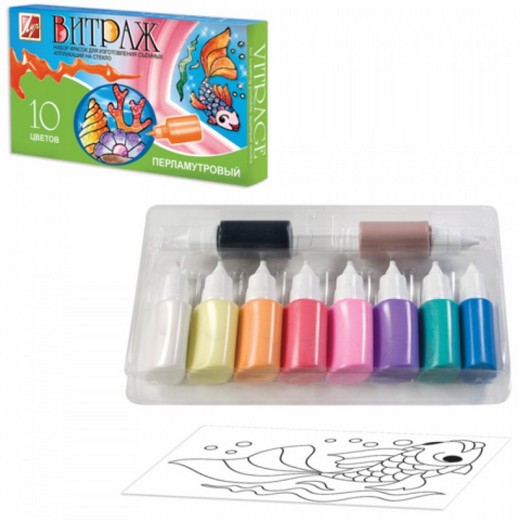 - Краски по стеклу Витраж перламутровый 10 цв