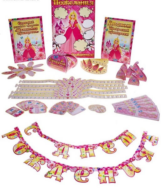 - Набор для проведения праздников бумага Принцессы с гирляндой