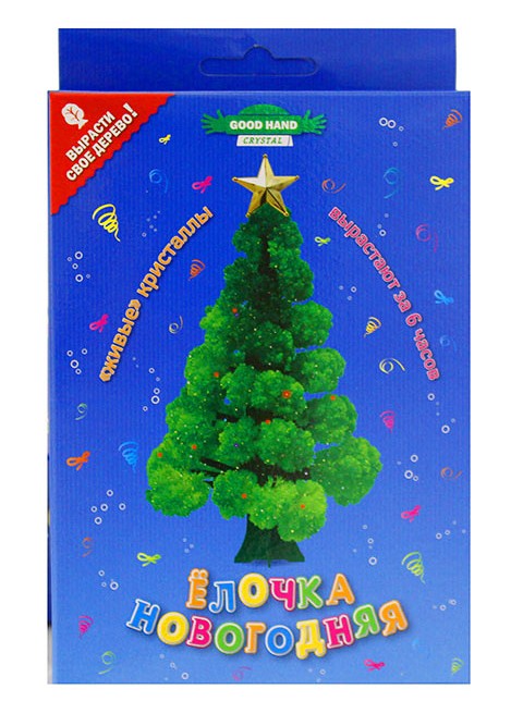 "Выращивание кристаллов. Новогодняя елочка"-  увлекательный набор, позволяющий в домашних условиях без помощи каких-либо инструментов вырастить новогоднюю елочку из кристаллов. В комплекте набора каждый исследователь обнаружит: картонную фигурку, пластиковую ёмкость, раствор пищевой соли, металлическую звездочку. Перед началом зрелищного эксперимента необходимо соединить составные части дерева, а затем полить его корни "волшебной" водичкой. Деревце начнет расцветать через 1-2 часа. Новогодняя ёлочка подарит ощущение долгожданного праздника, настроит детишек на положительный фон и обеспечит позитивное настроение на весь день. Оригинальная новогодняя поделка станет превосходным подарком-сюрпризом для близких, друзей и родных. Все составляющие набора выполнены из высококачественных и прочных материалов, абсолютно безопасных для детской игры.