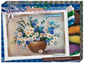 Купить Вышивка Бисером и Лентами Ромашки в вазе в г. Новосибирск Вы можете в магазине настольных и развивающих игр «Игры Почемучек».