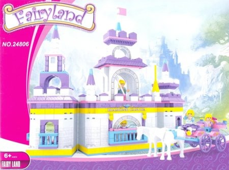 В набор входят 614 деталей, из которых можно соорудить сказочный замок и карету с лошадками, а также в наборе есть фигурки принца и принцессы и их слуг.