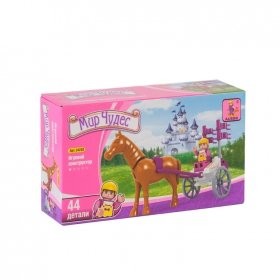 Конструкторы из серии «Мир чудес» непременно понравятся каждой девочке, они очень милые и выполнены в ярких девчачьих цветах. Соединив все детали, у вас получится собрать отличную повозку-двуколку с запряжённой лошадкой. Игрушка станет прекрасным дополнениям к другим наборам серии.