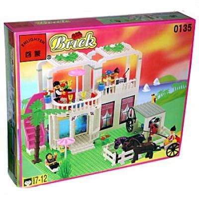 Замечательный конструктор для создания множества вариантов игровых конструкций. Ориентирован на строительство домиков: есть элементы крыши, балкончиков, окошки, заборчики, лестница. Ваш ребенок может построить прекрасный загородный домик с балконами, небольшим заборчиком и лестницей. Можно также собрать карету, повозку. В комплекте есть растения, фигурки лошадок и человечков. Собранный конструктор становится для ребенка новой, не менее увлекательной игрой.