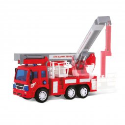 Пожарная машина «Камаз» от производителя «Технопарк» - это уменьшенная копия настоящей пожарной машины в масштабе 1:43. С такой игрушкой ребенок сможет почувствовать себя в роли пожарника. У машины открывающиеся двери, выдвижная лестница, которая меняет угол наклона, есть четыре опоры для устойчивости и установлен инерционный механизм. А для большей реалистичности в камазе имеется модуль со звуковым и световым эффектом.