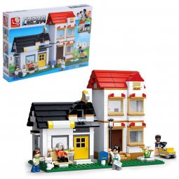 Замечательный конструктор для создания множества вариантов игровых конструкций. Ориентирован на строительство домиков: есть элементы крыши, балкончиков, окошки, заборчики, лестница. Ваш ребенок может построить прекрасный загородный домик с балконами, небольшим заборчиком и лестницей. Можно также собрать карету, повозку. В комплекте есть растения, фигурки лошадок и человечков. Собранный конструктор становится для ребенка новой, не менее увлекательной игрой.