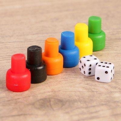 "Набор для настольных игр" – предназначен для самых разнообразных настольных игр ходилок, которые так обожают дети. Набор состоит из 2 игральных кубиков и шести разноцветных фишек, ярких цветов. На каждую грань игрального кубика нанесены точки (числа) от 1 до 6. Игральные кубики и фишки выполнены из прочного пластика, поэтому прослужат очень долго.
