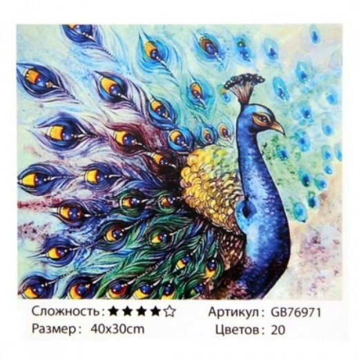 Купить Алмазная мозаика 30*40 Павлин в Новосибирске Вы можете в магазине развивающих и настольных игр "Игры Почемучек"