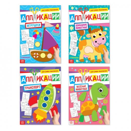 Купить набор книг с аппликациями А4 "Мои первые аппликации 4 шт" в Новосибирске Вы можете в магазине развивающих и настольных игр "Игры Почемучек".