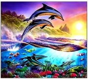 - Алмазная мозаика по номерам Дельфины на закате 30*40см