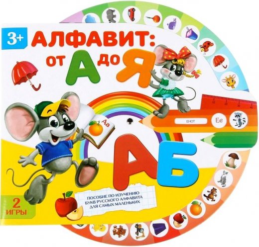 Интерактивная игра Алфавит от А до Я – представляет собой пособие по изучению русского алфавита для самых маленьких! Крутите колесо и знакомьтесь с буквами. Рядом с каждой расположен сектор, в котором написано слово и есть красочная картинка. Так малыш не только выучит азбуку, но и расширит словарный запас! Это интерактивное колесо подойдёт для обучения как дома, так и в дошкольных учреждениях. На обороте вы найдёте 2 весёлые игры, с которыми заниматься будет ещё интереснее! Отгадывайте буквы и слова различными способами.