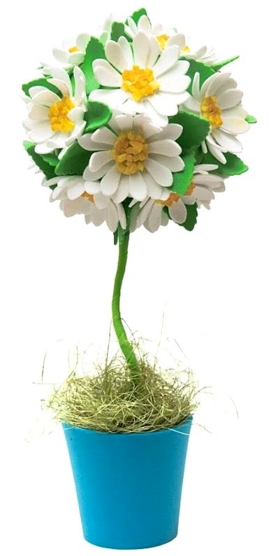 Топиарий Ромашка – это весьма интересный и увлекательный подарок для творческого ребенка, который любит делать поделки своими руками. Это элемент декора бесподобной красоты, который привнесет в дом свежего природного стиля. Набор дает возможность для каждого ребенка проявить свои творческие способности и создать оригинальное дерево счастья. Такое деревце можно поставить на полку как украшение или использовать в качестве подарка. Все необходимые материалы есть в комплекте, включая инструкцию, в которой простыми словами описан каждый шаг.