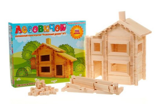 Детали конструктора изготовлены их высококачественной древесины и не покрыты ни лаком, ни краской. Поэтому ребенок сможет насладиться теплом и бархатистостью натурального дерева. Безупречная гладкость достигается кропотливой шлифовкой, что гарантирует безопасность игрушки. Кроме того, домик из настоящей древесины выглядят реалистично. А при желании его можно покрасить в любой цвет.Все детали конструкторов "Разборный домик" подходят друг к другу. Различие между наборами заключается в количестве и разнообразии деталей, и, как следствие, в сложности домиков, которые можно построить из данного набора.