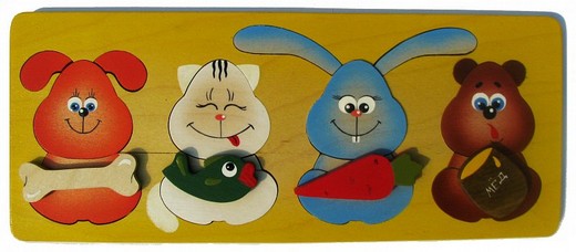 Мозаика "Лакомки Крона" - это яркая мозаика ручной работы, изготовленная полностью из дерева. Она станет одним из самых первых пазлов Вашего малыша и сможет познакомить его с цветами, формами и даст понятие какое животное чем питается. Эта игрушка очень похожа на рамку-вкладыши, однако животные не цельные, а составные: голова и туловище, а у зайчика и собачки ещё и ушки вынимаются отдельно. Мозаика несложная: все головы одинаковой формы, расставив их, малышу надо будет расставить туловища и подобрать каждому зверьку его пищу. Элементы пазла достаточно крупные, благодаря этому их удобно держать в ручке.