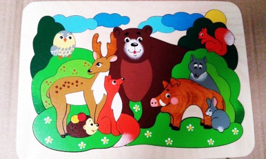 Мозаика "Лесные звери"- это деревянная мозаика-вкладыш, состоящая из 40 деталей. Данные детали выполнены в виде очаровательных животных. Суть мозаики состоит в том, что нужно расположить всех животных по предназначенным для них местам в деревянной рамке. Все детали разной формы и не имеют заданных отделений, поэтому складывать такие мозаики непросто, но интересно.