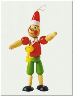 Дергунчик "Буратино" - старинные деревянные игрушки, очень популярные практически во всех странах Европы. Самый известный "собрат" нашего дергунчика - немецкий хампельман, игрушечный символ Германии, который в свою очередь является родственником итальянской марионетки. Эти климовские дергунчики удачно сочетают и отечественный и немецкий опыт (т.к. традиционно русские дергунчики были резные, а не точеные, и, как правило, неокрашенные). Буратино смешон и забавен, на шее у него висит золотой ключик, выполненный из дерева, а от ножек вниз идут ниточки, которые соединяются вместе и вплетаются в деревянный шарик внизу фигурки. Дергая за который, малыш получает веселую пляшущую фигурку. Дергание за шарик приводит в движение ножки Буратино. Малышу нравится пляшущий герой сказки Алексея Толстого, который так хорошо знаком взрослым и детям по книге "Золотой ключик или приключения Буратино". Сверху игрушки расположена небольшая петелька, за которую фигурку можно прикрепить к детской кроватке или коляске, чтобы кроха смог самостоятельно манипулировать игрушкой.