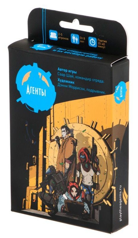 Настольная игра Агенты от компании Magellan — игра о тайнах, шпионах, их уловках и диверсиях. Вы должны использовать разных агентов для воплощения в жизнь своих амбиций, создания фракций, а также выполнения миссий. За успешно реализованные действия вы получаете очки за разведку. Задача в ходе игры — заработать как можно больше очков.