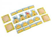 В начале игры на стол выставляются стартовые квадраты с макетами мини-замков – это центр или «начало» вашего королевства. На общий рынок выкладываются тайлы местности, в количестве, соответствующем количеству игроков. Таким образом, при игре вчетвером вы выложите на общий рынок 4 тайла местности. Все они пронумерованы (на обратной стороне) и выкладываются в ряд по возрастанию указанного числа: чем выше число на тайле, тем он более ценен. Игроки по очереди выбирают себе по прямоугольнику местности, выставляя на него своего человечка-мипла. Когда все участники сделают свой выбор, рядом таким же образом выкладываются новые тайлы, образуя второй ряд.