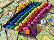 Таверны и соборы: Теперь вы сможете играть вшестером, благодаря целому набору миплов. Подсчёт очков сильно облегчится со специальными счётными квадратами по 50 очков. Новый большой мипл стоит двух маленьких! Вдоль дорог появились таверны, а в городах соборы, которые увеличивают количество очков за достроенные объекты, но если их достроить не получится, то и очков они совсем не принесут.
