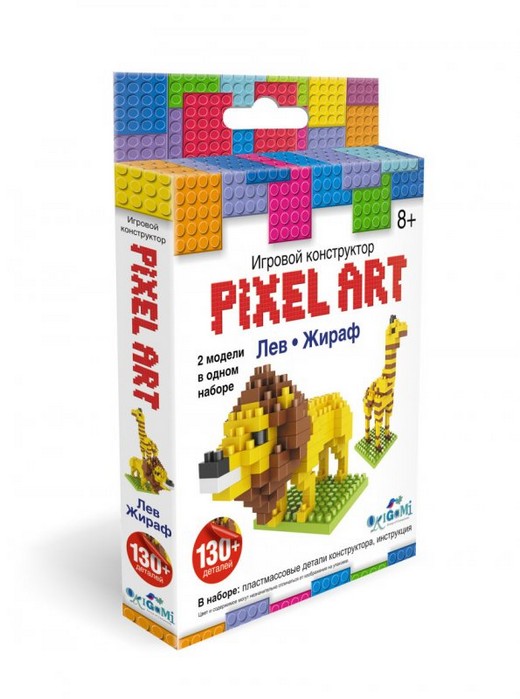 - Конструктор Pixel Art 2в1 Лев Жираф 130дет