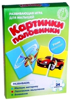 Купить Картинки половинки Учим транспорт в Новосибирске Вы можете в магазине развивающих и настольных игр "Игры Почемучек"
