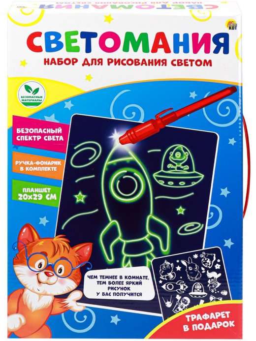Каждый ребёнок может стать волшебником и рисовать светом. Когда свет от фонарика ручки попадает на планшет, плёнка в этом месте начинает светиться и появляется след, как от фломастера.
