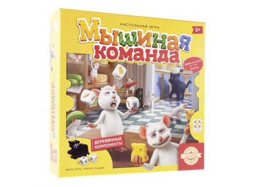 В секретной операции "Мышиная команда" могут участвовать даже самые маленькие (от 5 лет), бросая деревянные кубики, накрывая красочные картинки жетонами, отыскивая и собирая одинаковые продукты. Хлеб, рыба, огурцы, морковь и сыр разбросаны по всей кладовой, а за каждым действием мышонка – ход черного коварного кота.