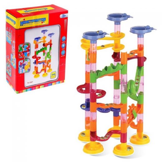 Части конструктора выполнены из качественных материалов, безопасных для здоровья ребёнка. Крохе не составит труда построить желаемый лабиринт: элементы легко скрепляются между собой. Чередуйте трубочки с пандусами, и у вас получится модуль для игры.