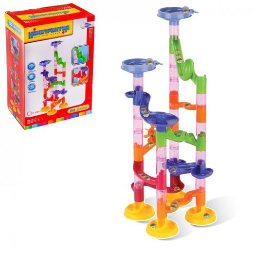 Части конструктора выполнены из качественных материалов, безопасных для здоровья ребёнка. Крохе не составит труда построить желаемый лабиринт: элементы легко скрепляются между собой. Чередуйте трубочки с пандусами, и у вас получится модуль для игры.