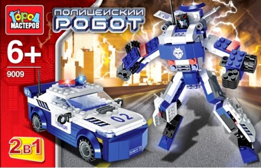 Конструктор Город мастеров 2в1 Робот полиция от российской компании "Город мастеров" является трансформером 2 в 1. Ребенок может собрать сначала полицейскую машину, а потом трансформировать ее в космического робота-полицейского. В комплект входит фигурка, которую можно использовать как водителя машинки или управляющего роботом.
