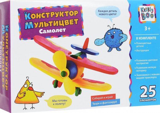 Конструктор "Самолет" из серии "Мультицвет" от отечественной компании Kribly Boo предназначен для самых юных машиностроителей. В набор входят пластиковые детали ярких цветов. У готового самолета есть корпус с открытой кабиной, куда можно посадить игрушечного пилота, выбрав фигурку или солдатика из имеющихся у малыша игрушек. Ребенок будет с радостью собирать красочный самолетик, а затем играть с ним, придумывая разные сюжеты.