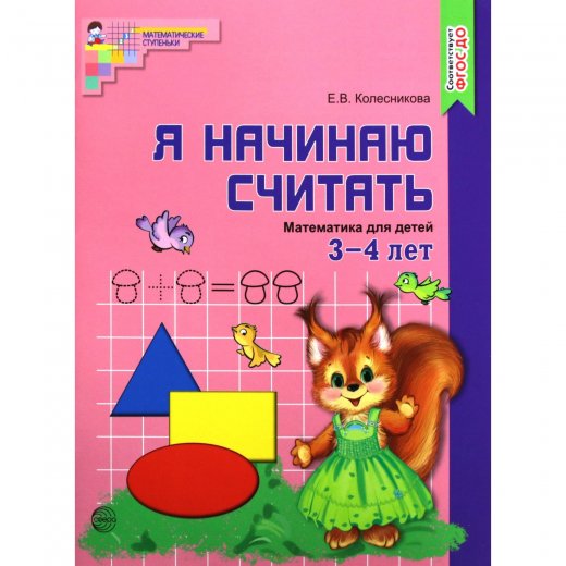 Книга «Я начинаю считать» и методическое пособие «Математика для детей 3—4 лет» входят в первую часть учебно-методического комплекта (УМК) парциальной образовательной программы «Математические ступеньки». Через систему увлекательных упражнений дети познакомятся с числами до 5, расширят знания о геометрических фигурах, временах года и частях суток, научатся ориентироваться в пространстве и решать логические задачи. Выполнение предложенных заданий решает одну из задач ФГОС ДО — формирование предпосылок учебной деятельности. Совместная работа со взрослым поможет ребёнку подготовиться к следующему этапу обучения по тетради «Я считаю до пяти». Новые красочные рисунки превратят занятие в радостное, яркое событие. В издании учтены требования ФГОС ДО к учебно-методическим комплектам парциальных образовательных программ.