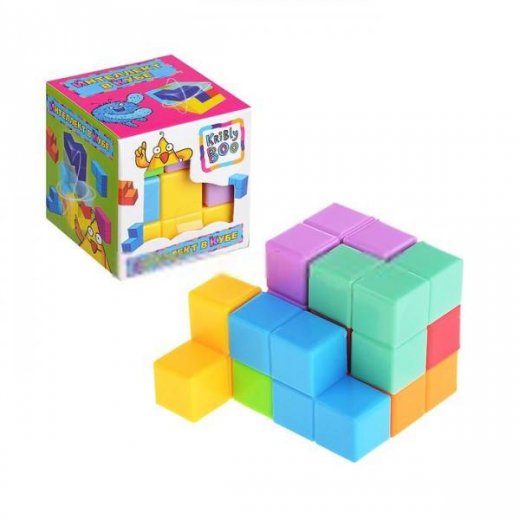 Головоломка "Интеллект в кубе" состоит из 7 деталей разного цвета, формы и размера. Детали головоломки имею разную форму, и напоминают собой элементы известной игры "Тетрис". Из них необходимо собрать куб. Благодаря компактным размерам игру можно всюду брать с собой, она никогда не надоест, потому что вариантов сборки головоломки очень много.