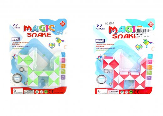 Головоломка Змейка – это интересный и занимательный подарок для ребенка, который обязательно ему понравится. Змейка состоит из 24 одинаковых треугольников, которые соединены между собой шарнирами - такой механизм соединения позволяет вращать элементы между собой. Задача состоит в сборке различного рода геометрических фигур, животных и прочих ассоциативных вещей. Юный творец абсолютно волен в своем воображении и фантазии и может делать фигуры, какие только придут ему на ум.