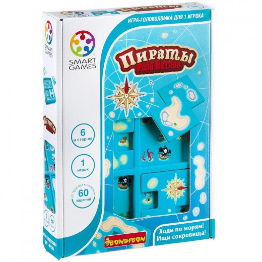 Логическая игра "Пираты: Роза ветров" зовет ребенка навстречу приключениям. Для этой игры ребенку не понадобится компания, головоломка рассчитана на одного игрока и дает ему возможность хорошенько подумать, не отвлекаясь.