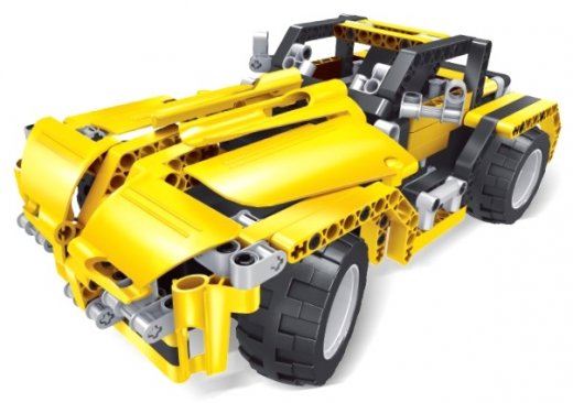 Радиоуправляемый автомобиль-конструктор «Мастер-Вездеход имеет два варианта сборки, оба из которых демонстрируют внушительные машины. Управлять собранным автомобилем можно дистанционно с помощью пульта. Конструктор имеет отличное скрепление деталей, отличается прочностью и необычным дизайном. Во время езды по ровной поверхности пола или бугристому асфальту игрушка останется целой.