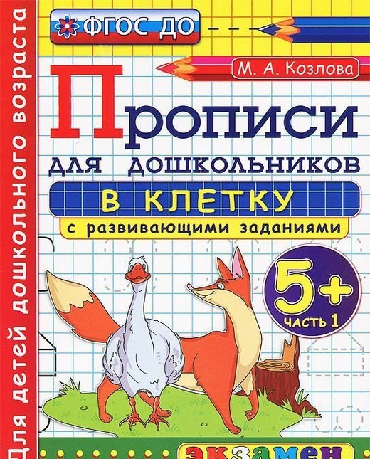 - Прописи в клетку с развивающими заданиями 5+ часть 1 М.А. Козлова
