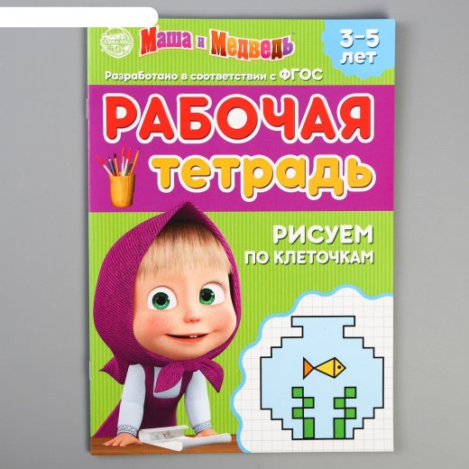 - Рабочая тетрадь Рисуем по клеточкам Маша и Медведь 3-5 лет
